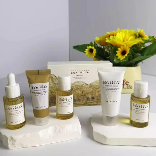 Experience the power of Centella Asiatica with our 5PCS Travel Kit Set, designed to soothe and nourish sensitive skin wherever you go.